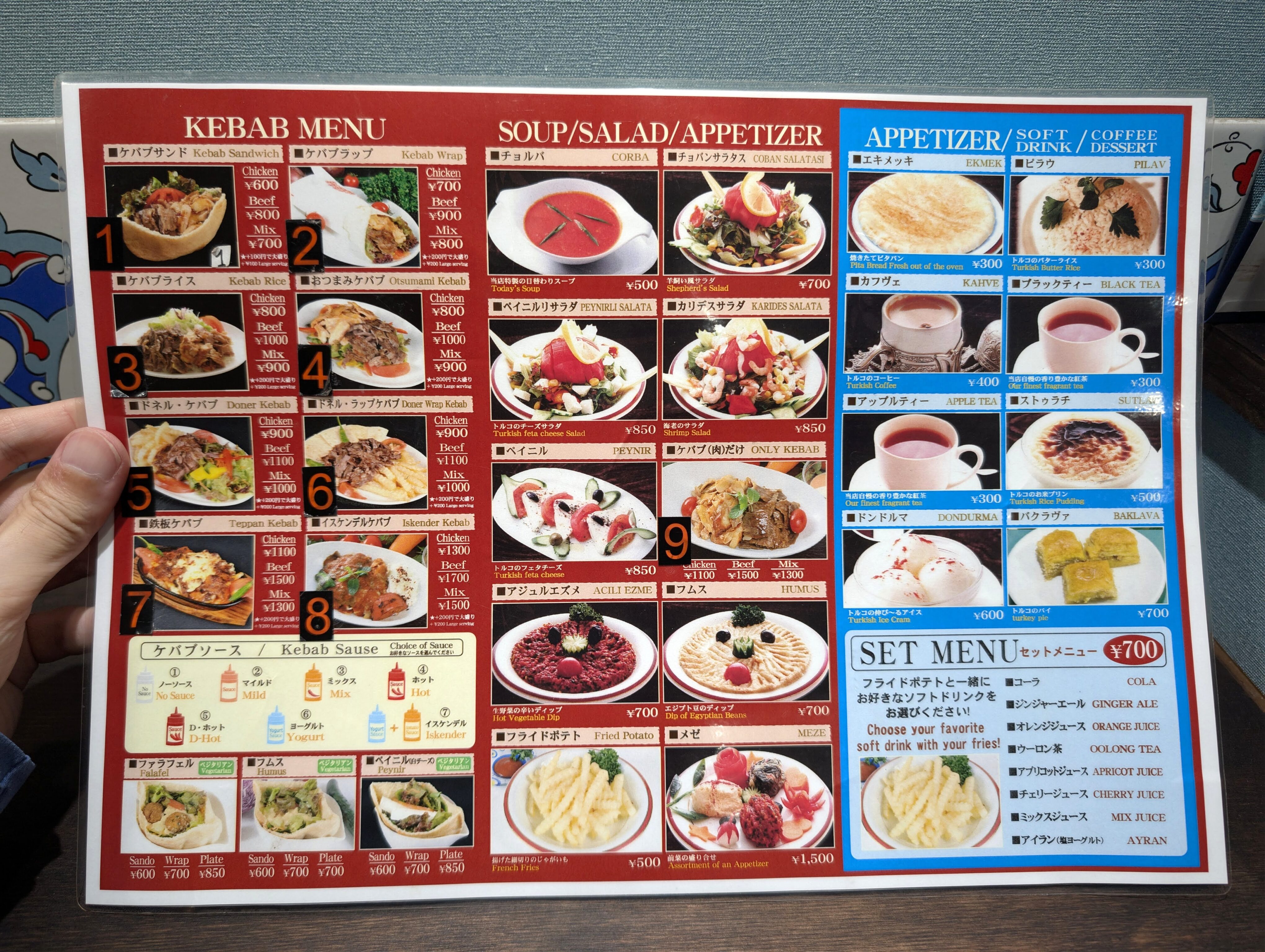 • ドネル・ケバブ: ¥900 / ¥1,100 / ¥1,000