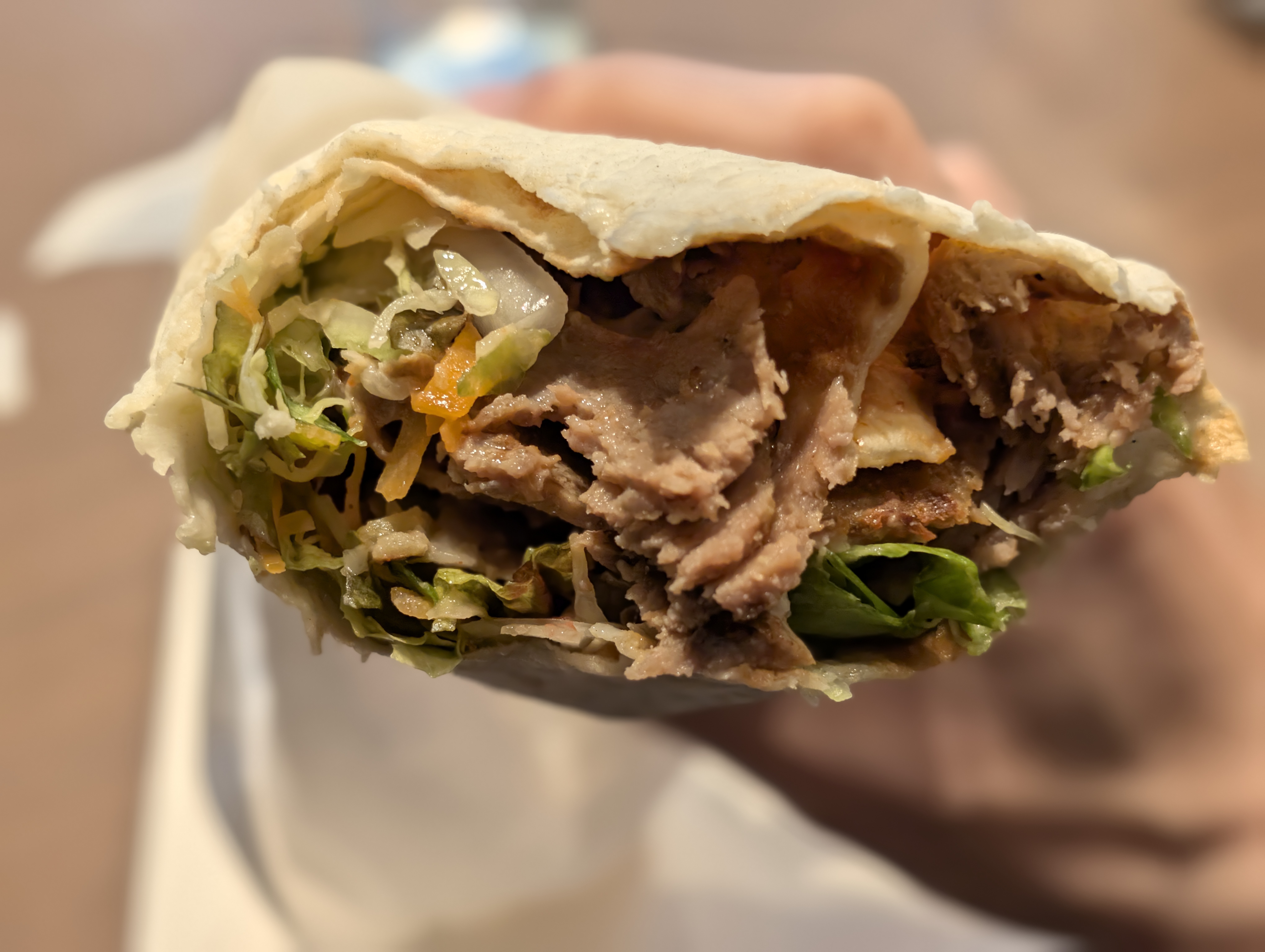 - ビーフ: むっちりとした食感です。スパイスの風味が程よく効いているほか、一部のケバブショップのビーフにありがちな、脂っこさはなく、食べやすい。